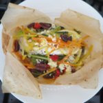 This recipe was inspired by a recent trip to Marco Island, Florida. There is a wonderful seafood market called Paradise Seafood and Gourmet Market. This little shop, just off the main thorough way, lays an abundance of beautiful fish and seafood. What intrigued me were all the options you could do using this simple parchment wrapped meal. It screamed out delicious and healthy. Healthy eating seems to be particular important this time of year. Not to say we don’t try to do this throughout the year, but after a winter in northern Michigan, it just seems a little more in focus for some of us. While the weather isn’t quite there to fire up the grill, this is a fun alternative in the oven. You could do the same process using foil and placing it on your grill.