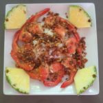 Serve over rice, drizzling the garlic butter over the prawns and rice. Garnish with pineapple slices.