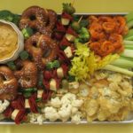 Use a sheet pan that is 18 inches by 13 inches or something close to that. To complete the look, you want to make sure you cover every inch of the sheet pan with food. Snug food close to edges as well. I used the broccoli, cauliflower and celery to cover the areas around the other food. To add some heights, I garnished the beer cheese dip with chives and placed celery leaves in the center of the tray. No two trays will ever look alike. The fun part is to let your creativity guide you. I love the concept of a “Party on a Tray”. You can take this same concept and use all sorts of different food: Chicken Wings, Salami, Cheese Chunks, Breadsticks, Hummus & Pita Chips, Nachos. Whatever you want to serve, put it all on one tray and let your imagination run wild!