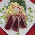 This is such a great recipe if you want to enjoy your company and not be slaving over a stove top or grill. The potato salad can be made ahead. And, other than the time to heat up the salt block, the tuna only takes a couple minutes per side. So enjoy your time with family and friends and “wow” them with a meal in very “Good Taste that Tastes Good”.