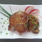Now that Apple Season has arrived, I couldn’t think of a better pairing than a thick cut sautéed pork chop with apples. There’s nothing like homemade applesauce to compliment a pork chop but I wanted to take it to another level. Therefore…Chutney. Homemade chutney is like applesauce on steroids. You can combine some amazing flavors that accentuate the flavor of pork. Adding in ginger and red pepper give it some zest. The brandy adds some depth. The dried cherries add some extra tang. The cumin, orange zest, scallions and cinnamon bring it all together. There’s no sugar in this recipe. I was going for the deeper more savory flavors.